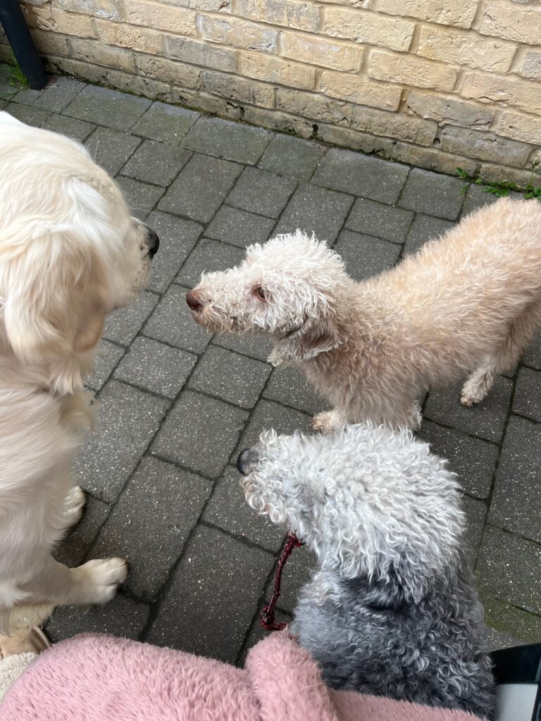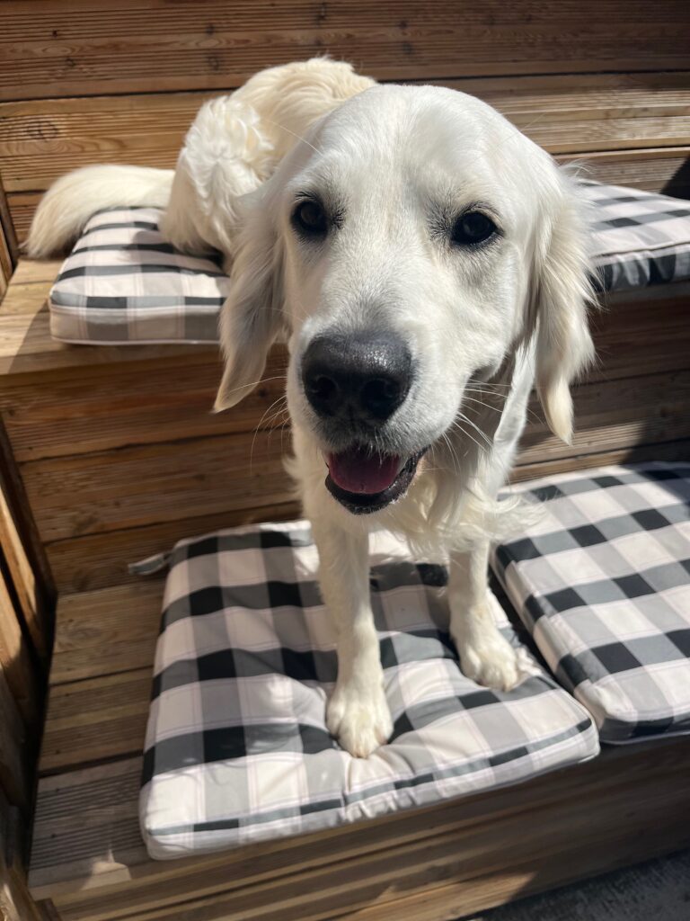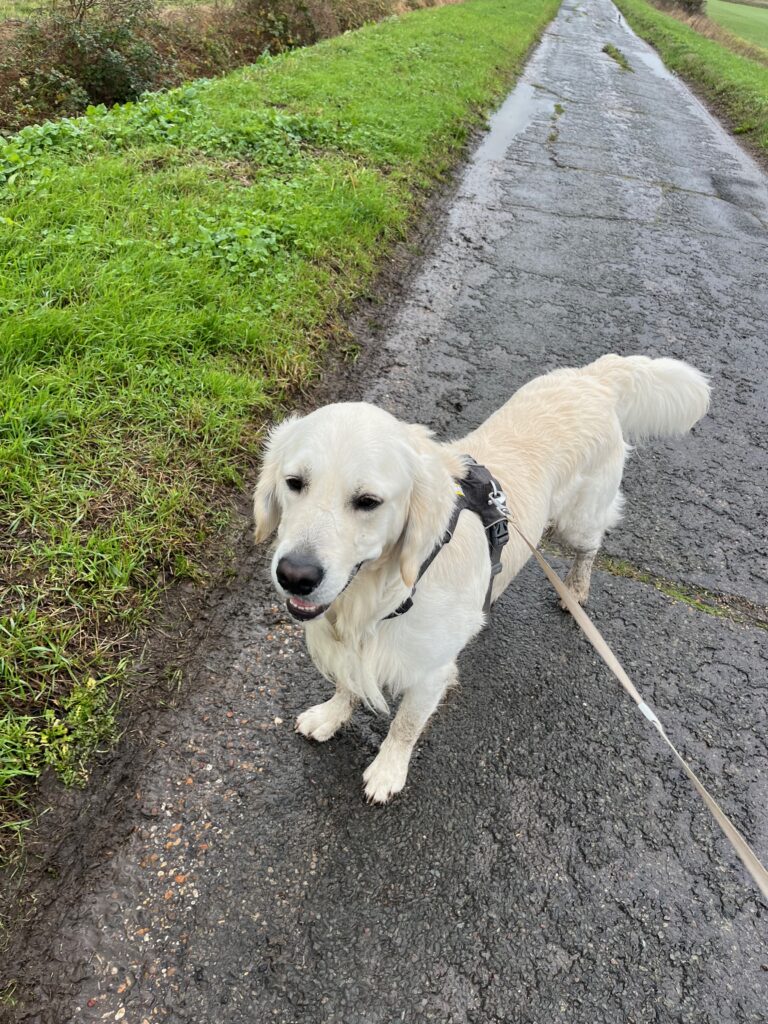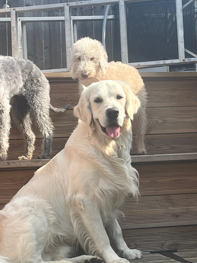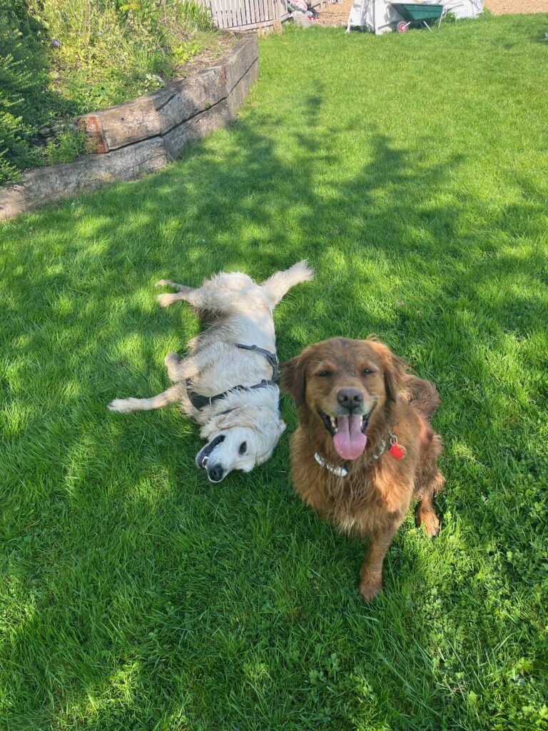 This guy is a bag of fun and cheekiness. He loves the other pups and playing with them, running around, running off if he gets the chance. Full of love and play and fun, gotta love a golden. The Waffle wiggle is the best